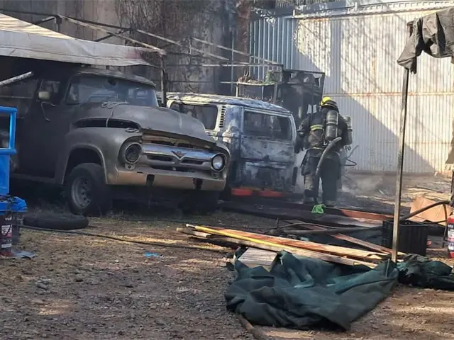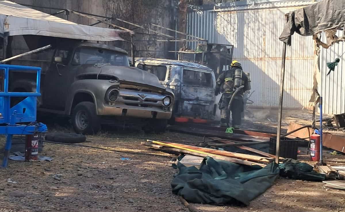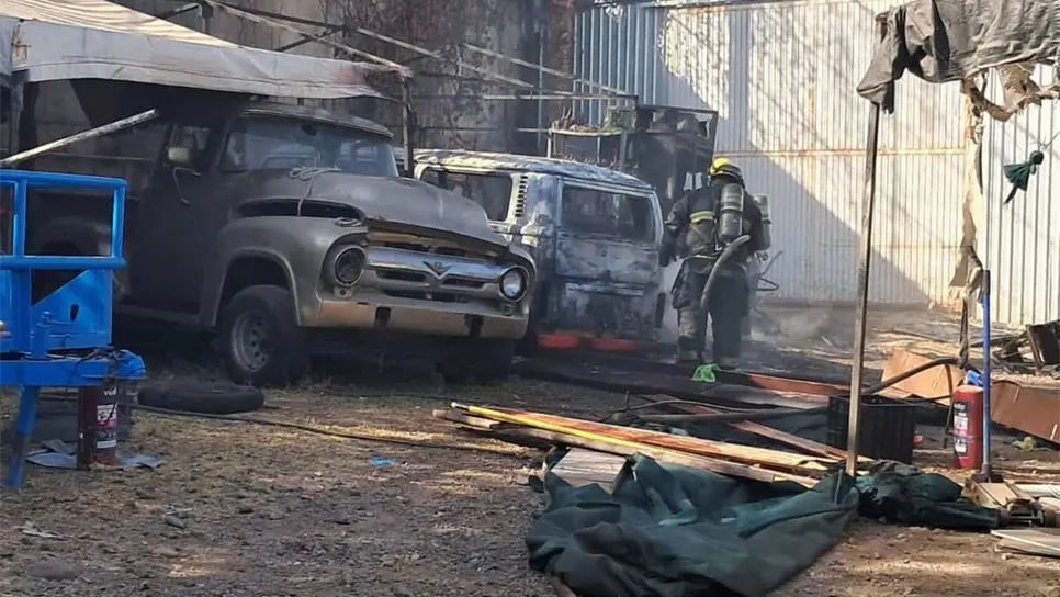 El reporte indica que fue la rápida reacción de los bomberos de la ciudad lo que evitó que el fuego pasará una Chevrolet Apache, y que consumiría el taller completo.