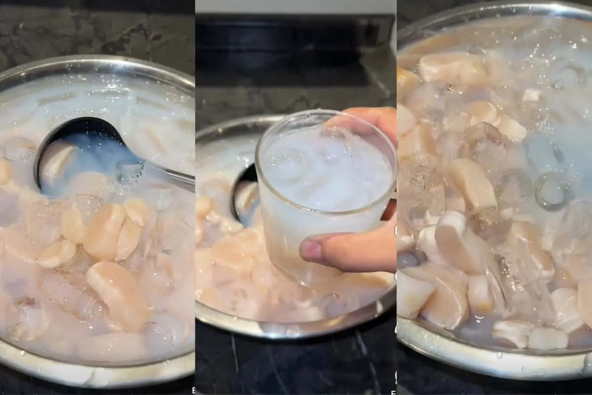 Seguramente al disfrutar de este alimento con sal y limón así como algunas salsas para acompañar, te parece desagradable imaginar qué podrías tomarlo en una bebida pues, para tu tranquilidad esto no es real, pues esta agua fresca de callo es únicamente una medida para mantener bien fresco a este marisco, así como lo señaló el creador del video, logrando engañar a sus seguidores.