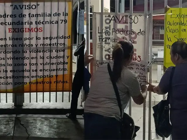 Padres de familia cierran las puertas de la Escuela Secundaria Técnica número 79 en la Colonia Renato Vega Amador por la violencia que impera en la colonia, con esto, exigieron clases en línea para poder continuar con la educación de sus hijos de manera segura.