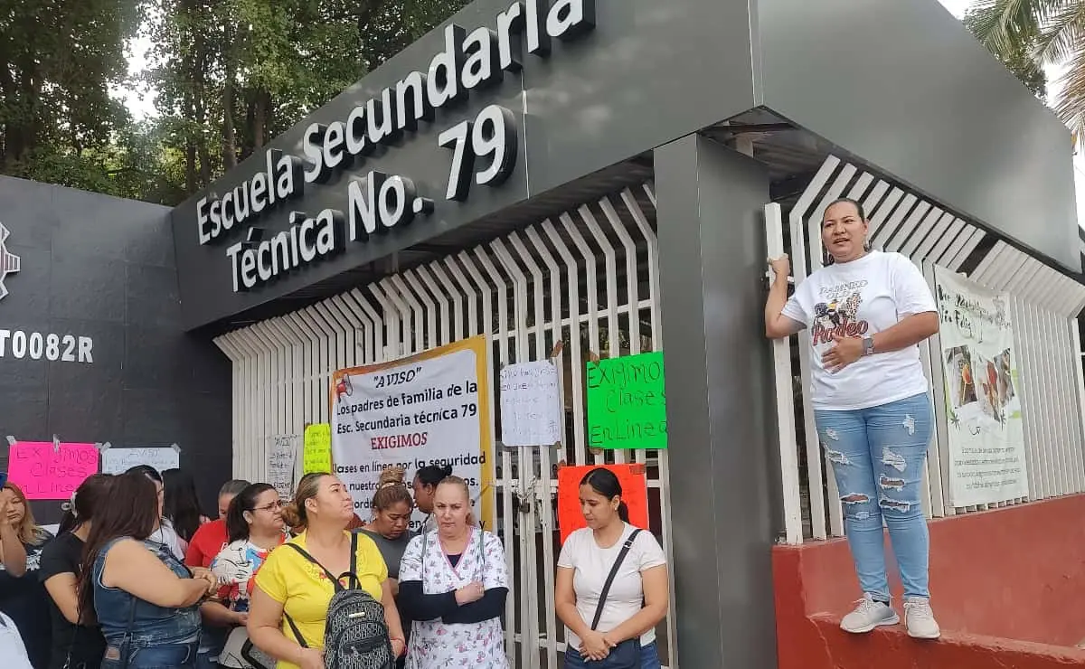 Padres y madres de familia de la Escuela Secundaria Técnica No. 79, en el sector La Florida, en Culiacán, impidieron el paso al plantel para manifestarse y exigir clases virtuales por los constantes hechos de inseguridad en la zona.