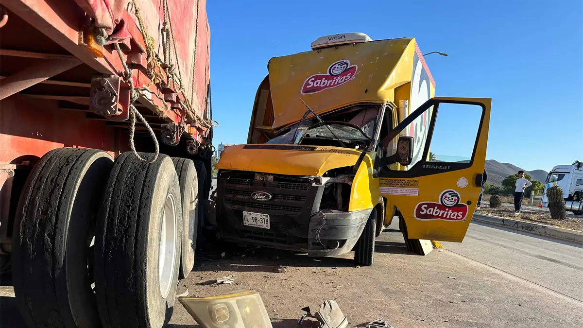 Un aparatoso accidente se registró esta tarde sobre la carretera estatal Los Mochis-Topolobampo, a escasos kilómetros del puerto, donde el chofer de un camión expendedor de frituras se impactó por alcance contra un tráiler.