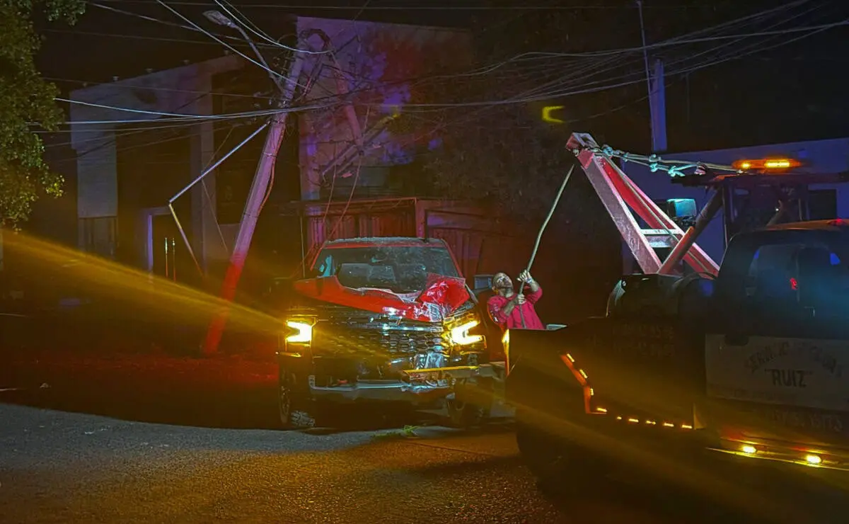 Conductor ebrio choca y derriba un poste de la CFE en Los Mochis; deja a toda la colonia sin luz