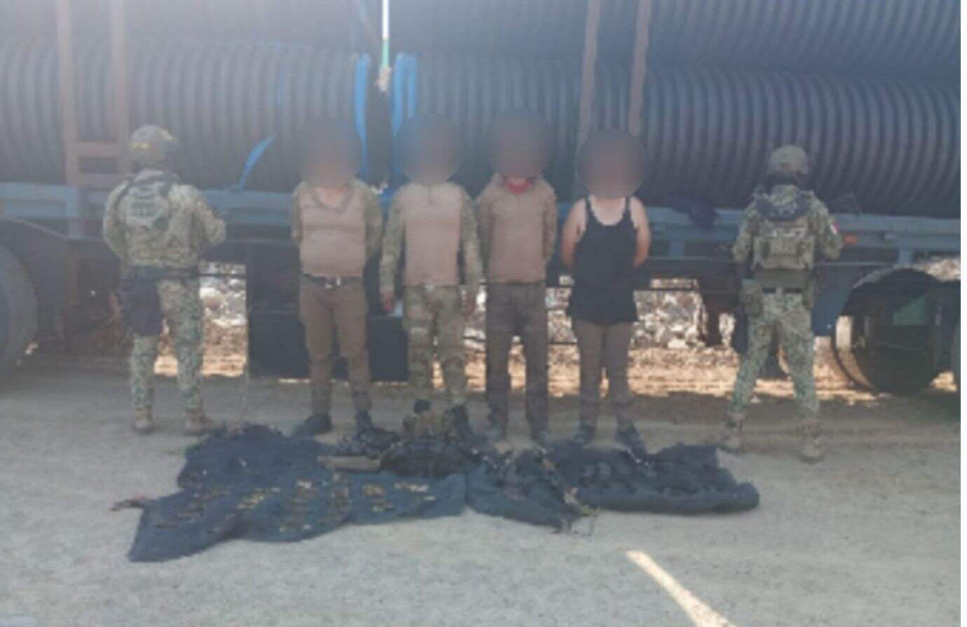 Cuatro sujetos que andaban armados fueron detenidos y puestos a disposición de las autoridades, a quienes se les decomisaron armas, cargadores, cartuchos y equipo táctico en El Rosario.