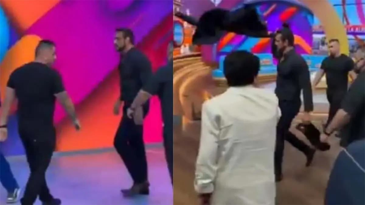 Después de que lo golpeó y le arrancó la playera, uno de los conductores y parte del staff intentaron intervenir para calmar al luchador, pero este respondió con empujones, y buscando seguir atacando a su objetivo.