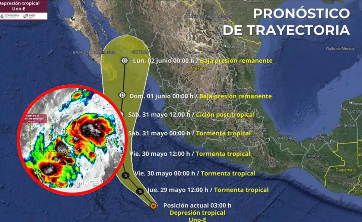 La Depresión Tropical 1-E, lo que sería el primer ciclón tropical de la temporada en el Pacífico, avanza hacia las costas de Sinaloa. Según los últimos reportes del Servicio Meteorológico Nacional (SMN) de la Comisión Nacional del Agua (Conagua), el fenómeno se intensificará en las próximas horas y traerá consigo lluvias y vientos a varios estados del occidente y noroeste de México.