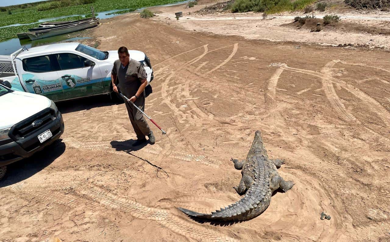 Protección Civil libera dos cocodrilos en Culiacán, uno de ellos de 4 metros