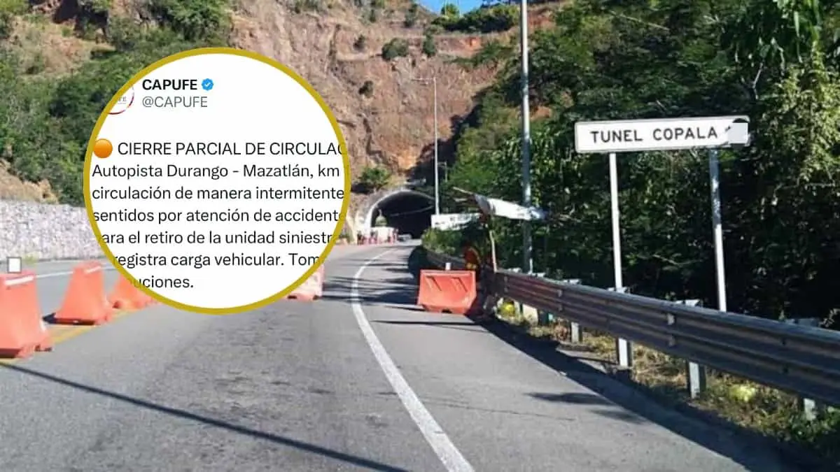 El accidente de un tractocamión, el cual se salió de la carretera por la Durango-Mazatlán obligó al cierre parcial de la circulación de la autopista durante esta madrugada y mañana de miércoles, informó Capufe.