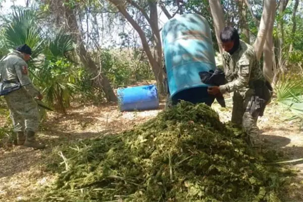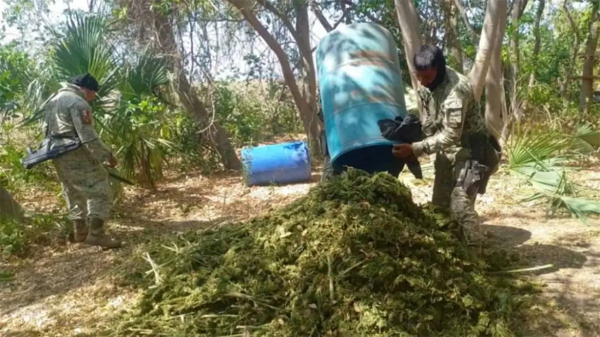 Personal del Ejército Mexicano, en coordinación con la Guardia Nacional, la Secretaría de Marina, la Secretaría de Seguridad y Protección Ciudadana, la Fiscalía General de la República, la Fiscalía General del Estado y la Secretaría de Seguridad Pública del Estado, localizó un secadero de marihuana en la zona rural de Culiacán.