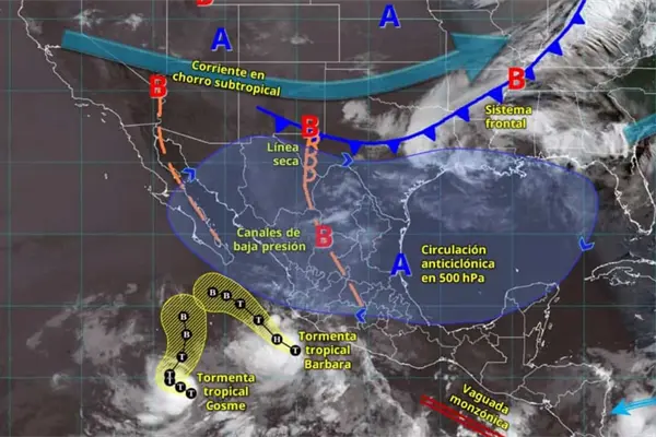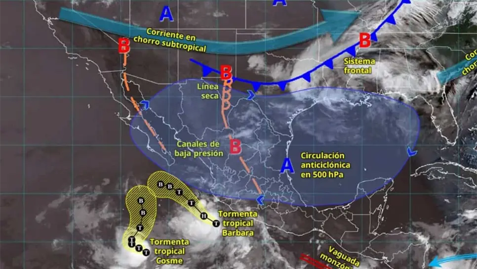 El ciclón tropical “Bárbara” podría intensificarse a huracán categoría 1 frente a las costas de Jalisco; “Cosme” se debilita en aguas abiertas y la onda de calor persiste en gran parte del país.