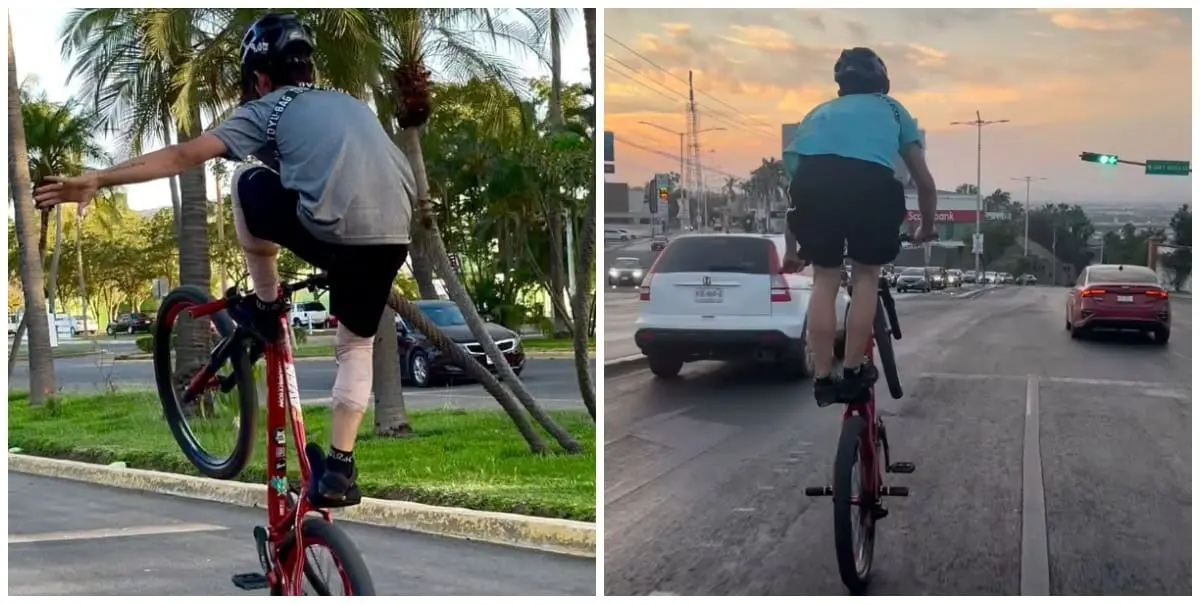 El ciclista toma las calles de Culiacán para hacer rodadas y lucir su destreza en la bicicleta, realizando diversas piruetas que captan la atención de los ciudadanos, el joven biker llamó la atención y sus videos se hicieron virales en algunas redes sociales, es impresionante su talento para conducir.