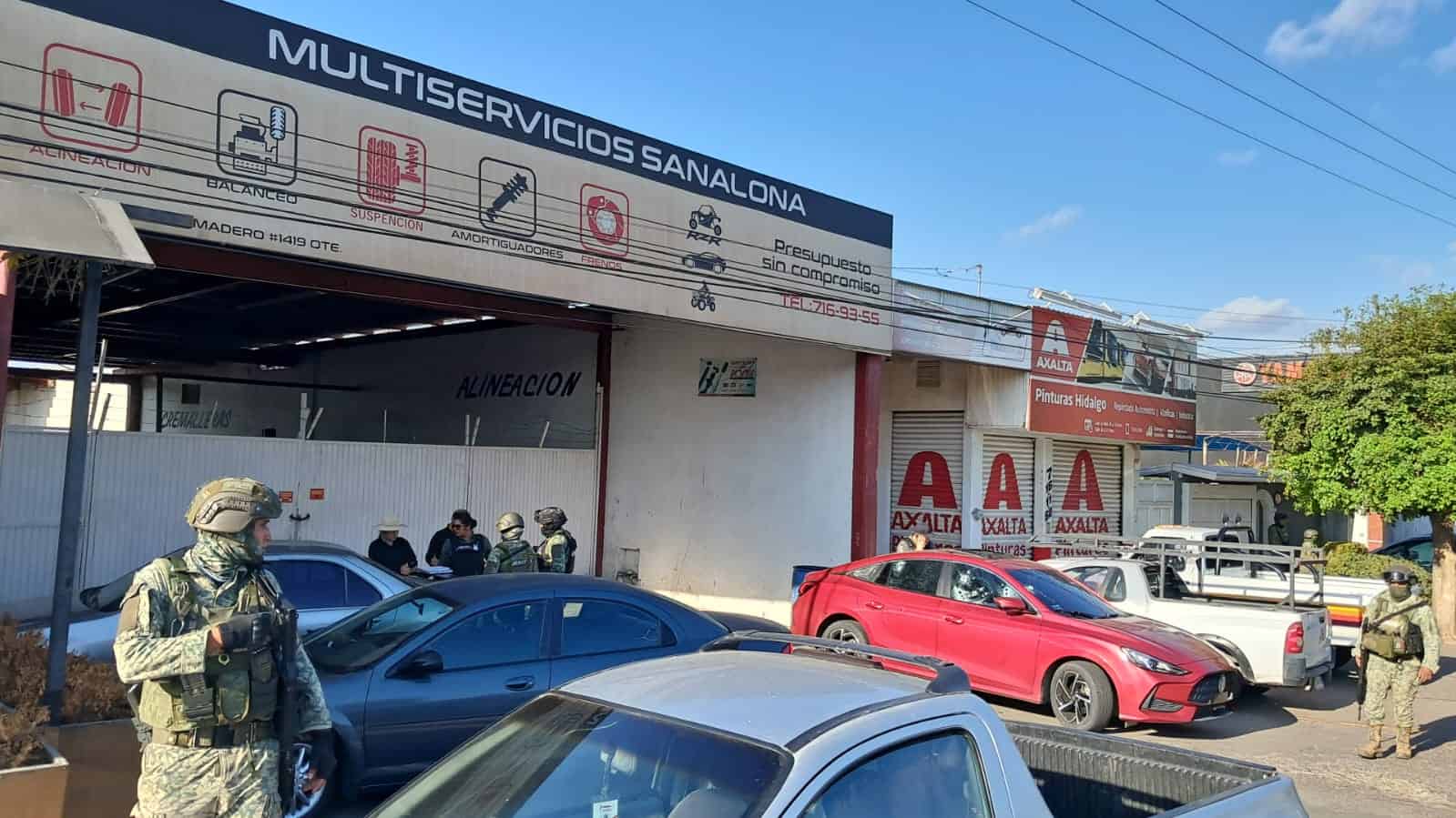 Al llegar las autoridades observaron que los hechos ocurrieron a las afueras de un taller mecánico. Los militares fueron apoyados por dos helicópteros de la Fuerza Aérea Mexicana.