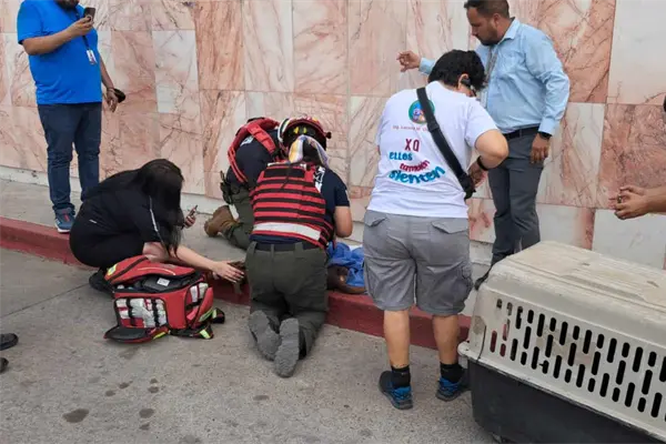 Los héroes suelen venir de la Cruz Roja, del IMSS o del ISSSTE, pero en esta ocasión llegaron a bordo de una llamativa camioneta blanca con dibujos de huellas de perro en vivos colores y un logotipo que decía "Pet's go, traslado de mascotas".
