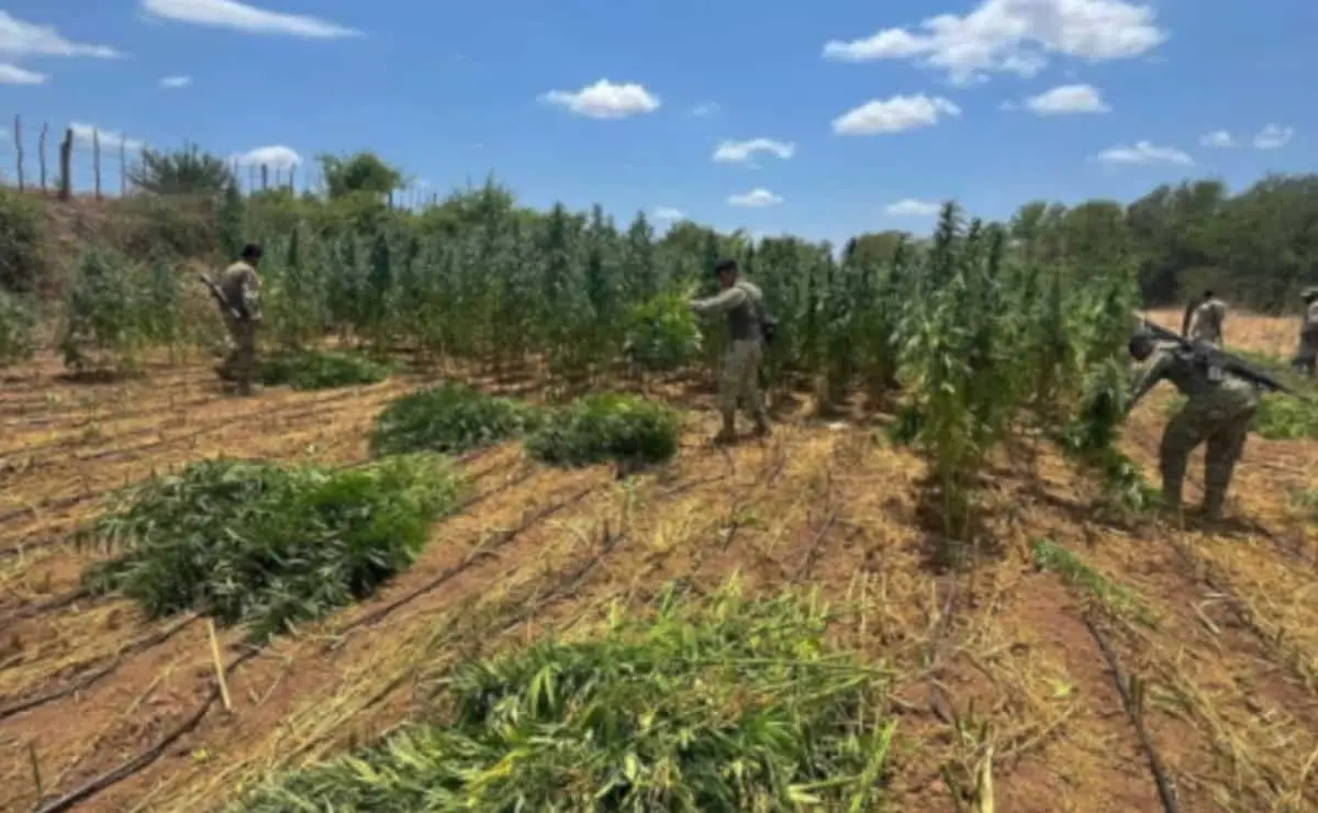 Personal del Ejército Mexicano, en coordinación con la Guardia Nacional, la Secretaría de Marina, la Secretaría de Seguridad y Protección Ciudadana, la Fiscalía General de la República, la Fiscalía General del Estado y la Secretaría de Seguridad Pública de Sinaloa, a través de la Policía Estatal Preventiva, localizó y destruyó un plantío de marihuana en Culiacán.