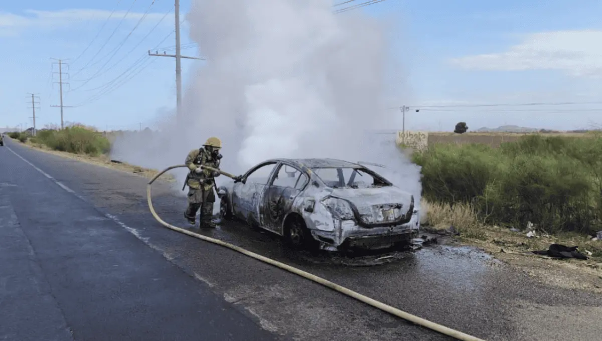 Gran susto se llevó el conductor de un vehículo de la mañana de este lunes, al incendiarse su vehículo el cual terminó como pérdida total mientras circulaba sobre la carretera internacional México 15, en el tramo de la ciudad de Los Mochis hacia el municipio de Juan José Ríos.