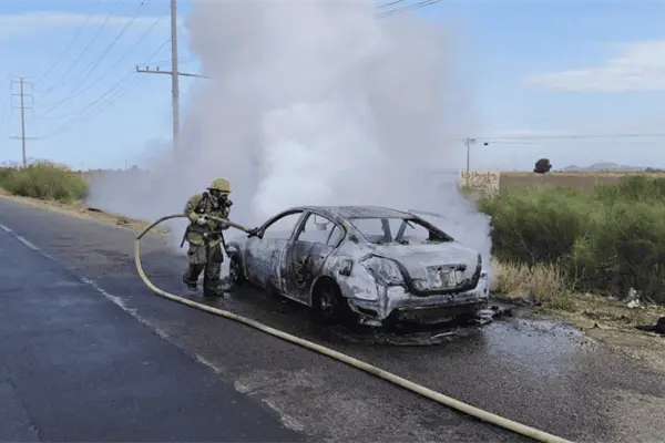 Elementos del cuerpo de bomberos de la ciudad de Los Mochis acudieron al llamado de emergencia. Y al llegar de inmediato comenzaron a trabajar para sofocar el fuego sin embargo el incendio ya había consumido por completo el vehículo y terminó calcinado como pérdida total.