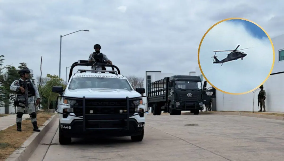 Un fuerte operativo de seguridad por aire y tierra se registró esta mañana por elementos de la Guardia Nacional y Ejército, en el residencial Benevento, frente a la colonia Los Ángeles, en Culiacán, a 150 metros de la carretera a Imala.