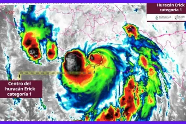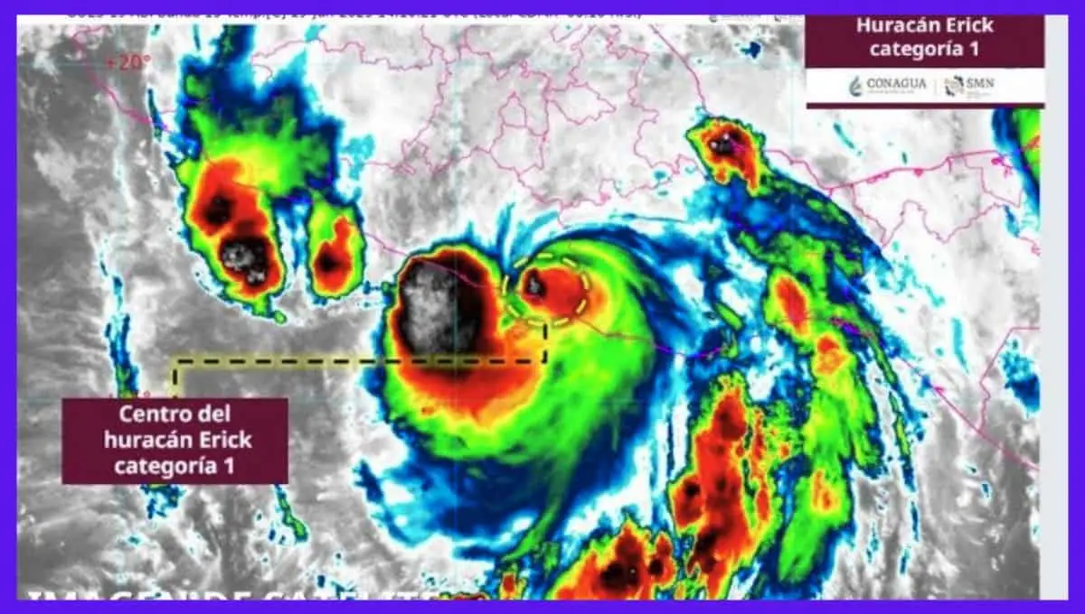 De acuerdo al último reporte del Servicio Meteorológico Nacional (SMN), el huracán Erick se mantiene con vientos máximos sostenidos de 140 kilómetros por hora y rachas de 165 km/h. Mantiene su desplazamiento hacia el noroeste a 19 km/h.