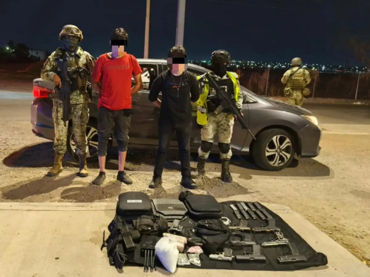 Elementos del Ejército Mexicano, en coordinación con la Guardia Nacional, la Secretaría de Marina, la Secretaría de Seguridad y Protección Ciudadana, la Fiscalía General de la República, la Fiscalía General del Estado y la Secretaría de Seguridad Pública de Sinaloa, a través de la Policía Estatal Preventiva, detuvieron a dos civiles con armas, droga y un vehículo robado en la ciudad capital.