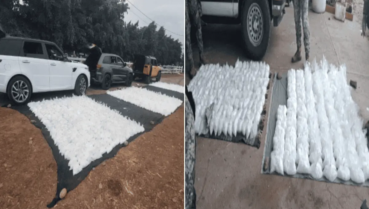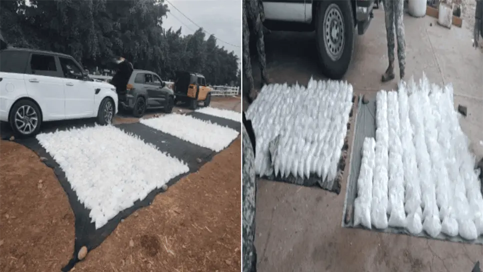 Fuerzas federales aseguraron cuatro camionetas de lujo que en su interior escondían cientos de bolsas de plástico con 746 kilogramos de metanfetamina, en Culiacán.