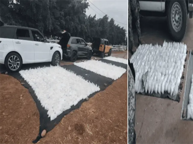 Aseguran camionetas de lujo repletas de metanfetamina, en Culiacán