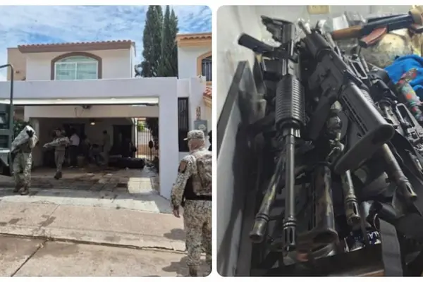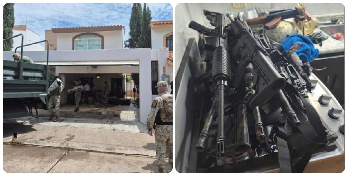 Un lanzagranadas, lanzacohetes, 114 armas largas y 65 armas cortas fueron aseguradas en la colonia Santa Margarita, Culiacán tras el cateo de dos inmuebles.