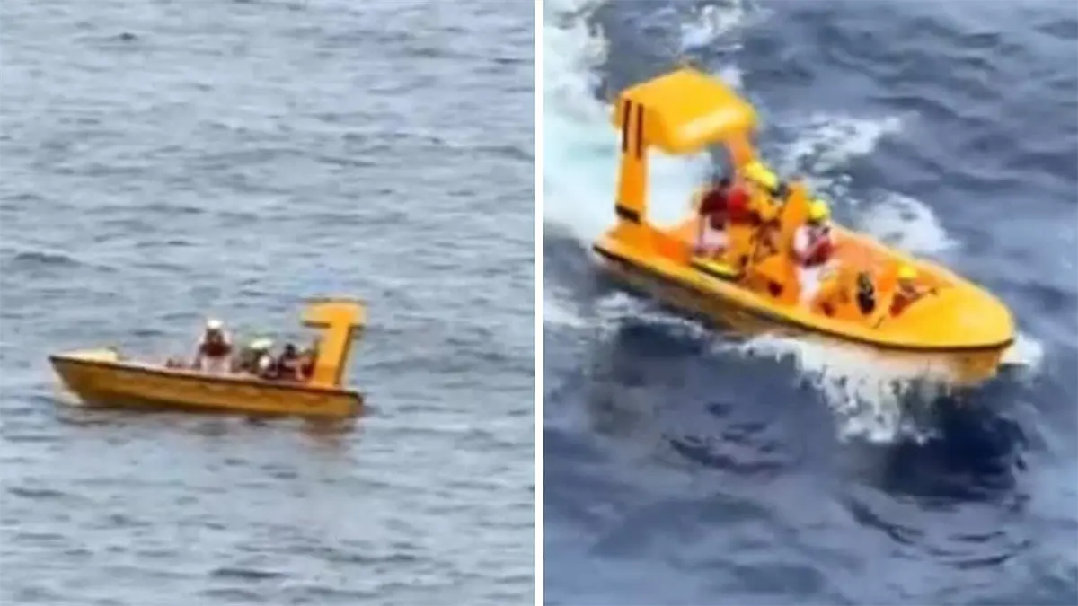Durante las labores de rescate, en las que la tripulación lanzó un bote amarillo de rescate y salvavidas, se activó una alerta de emergencia que se escuchó en todo el barco.
