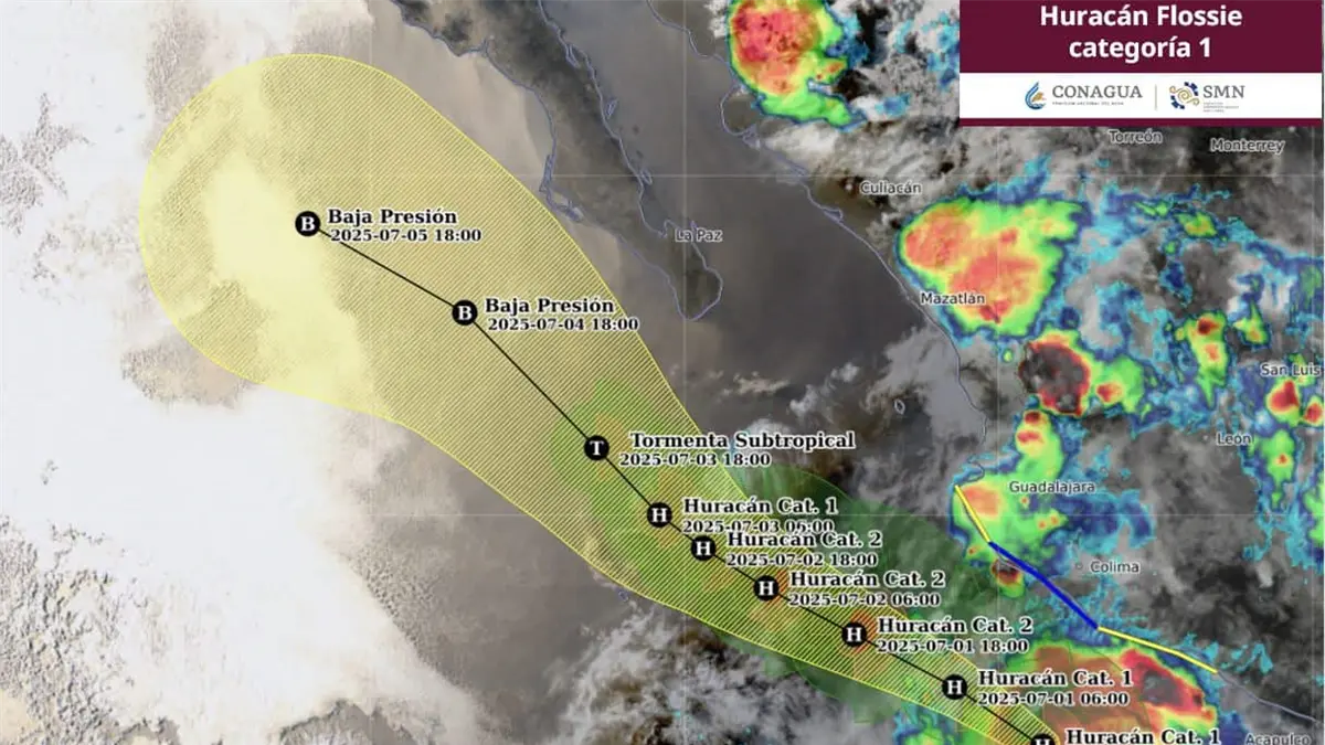 La noche de este lunes, "Flossie" se ha intensificado a huracán de categoría 1 en la escala Saffir-Simpson, lo que genera una alta probabilidad de lluvias intensas a torrenciales, vientos fuertes y oleaje elevado en varios estados del Pacífico mexicano, por lo que las autoridades instan a la población a extremar precauciones.