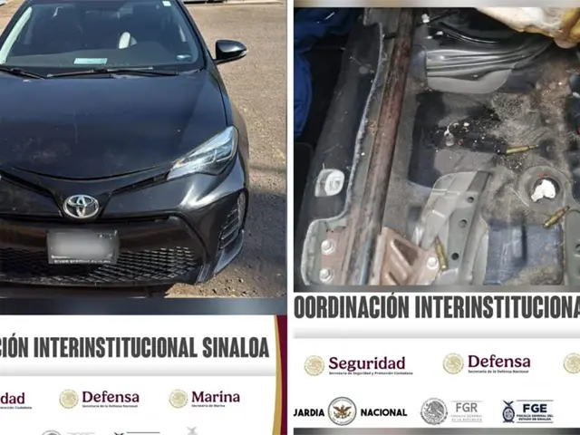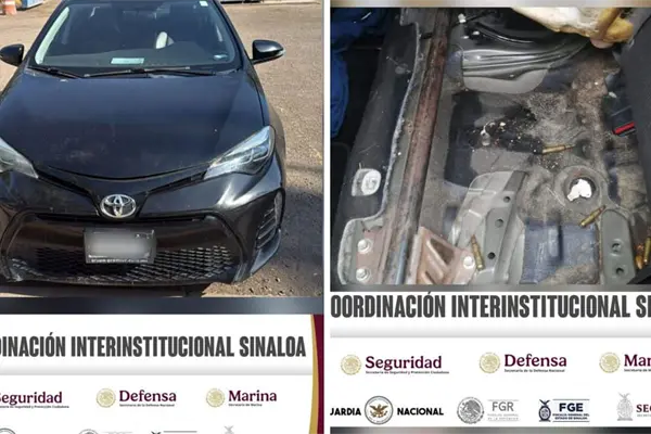 Los elementos de la Secretaría de Seguridad Pública de Sinaloa, a través de la Policía Estatal Preventiva, en coordinación con el Ejército Mexicano, la Guardia Nacional, la Secretaría de Marina, la Secretaría de Seguridad y Protección Ciudadana, la Fiscalía General de la República y la Fiscalía General del Estado, aseguraron un vehículo con objetos del delito en su interior.