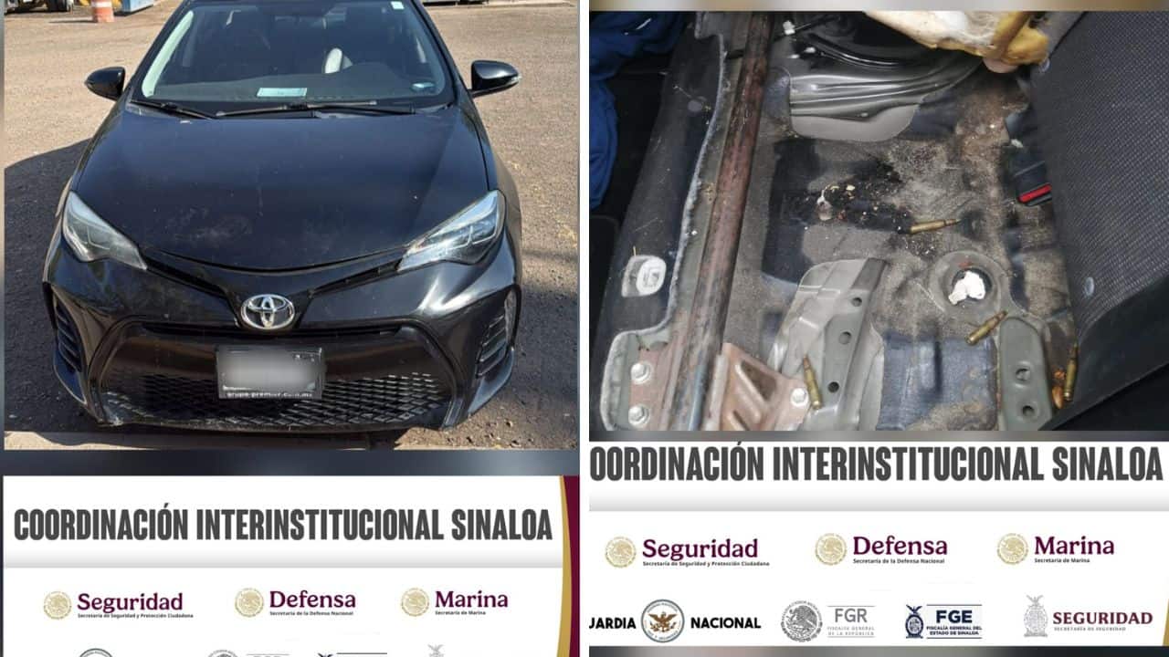 Durante un operativo de los agentes de seguridad y militares lograron asegurar un vehículo Toyota que tenía algunos cartuchos útiles para arma larga en la colonia Lomas de Tamazula en Culiacán.