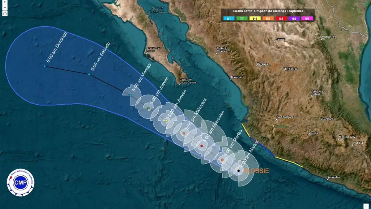 El fenómeno natural Flossie es la sexta tormenta con nombre formada en el Océano Pacífico Mexicano en lo que va de este 2025, llegando después de Alvin, Bárbara, Cosme, Laila y Erick.