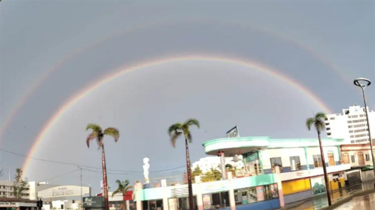 Las lluvias que se registraron esta mañana de martes en Mazatlán trajeron consigo, además de una nueva refrescada a los árboles, un fenómeno que es poco común, un arcoíris doble o también conocido como “arcoíris gemelo”.