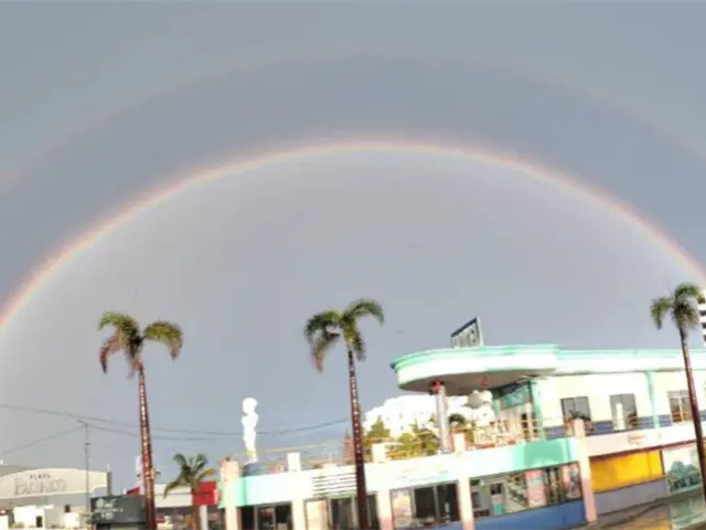 El momento, fue captado en fotografías y videos, que rápidamente se han viralizado en redes sociales, que muestran este bello efecto de la naturaleza, en el que los colores del arcoíris lucen al doble.
