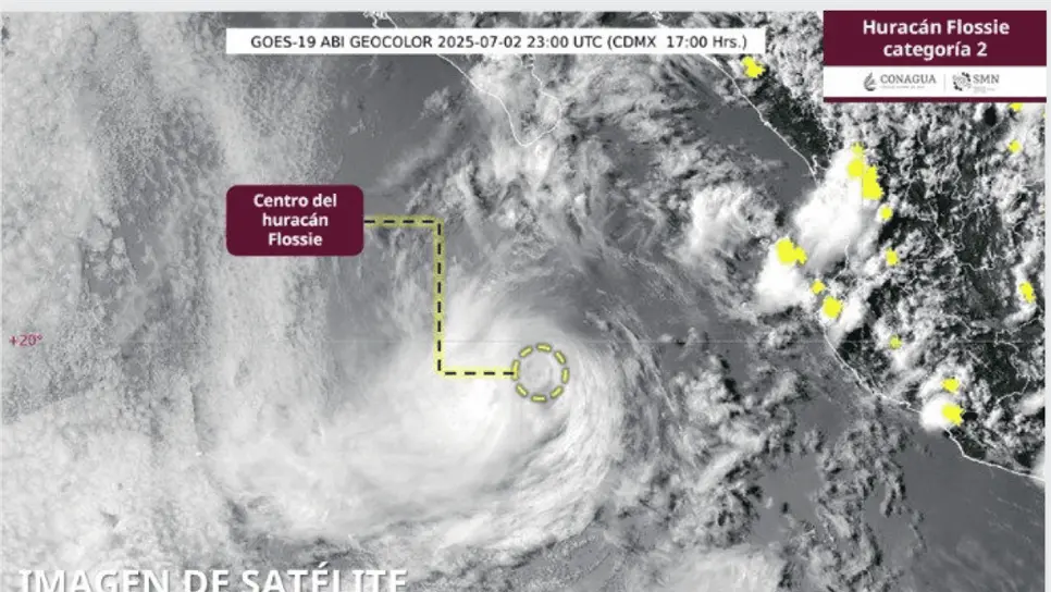 Durante esta noche y madrugada del jueves, el huracán Flossie de categoría 2 en la escala Saffir-Simpson se desplazará al sur de las costas de Baja California Sur, dejando de afectar gradualmente el occidente del país.