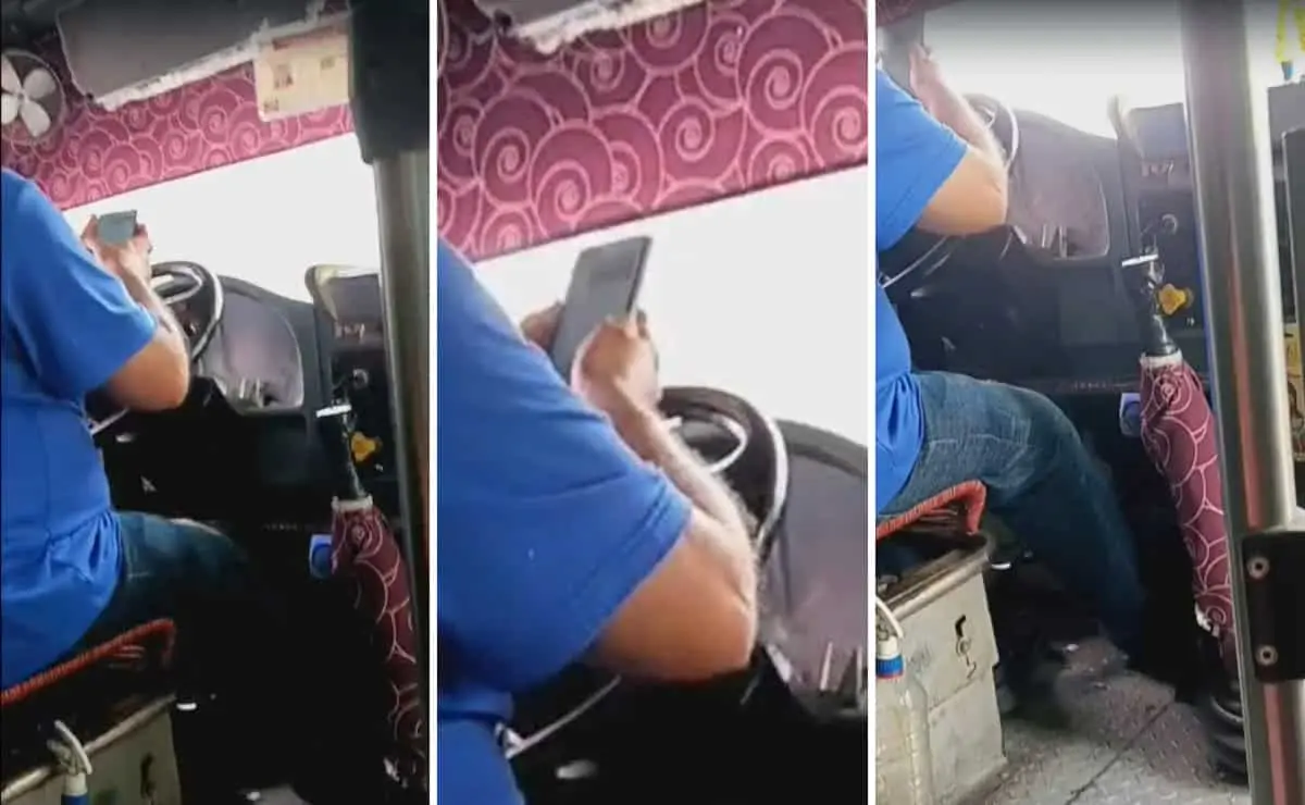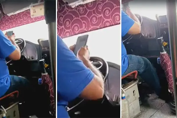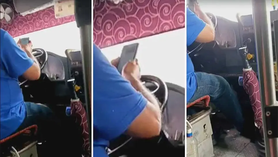 Los pasajeros grabaron con sus celulares al conductor que a simple vista se aprecia como recarga sus brazos al volante para utilizar su dispositivo móvil mientras va conduciendo.