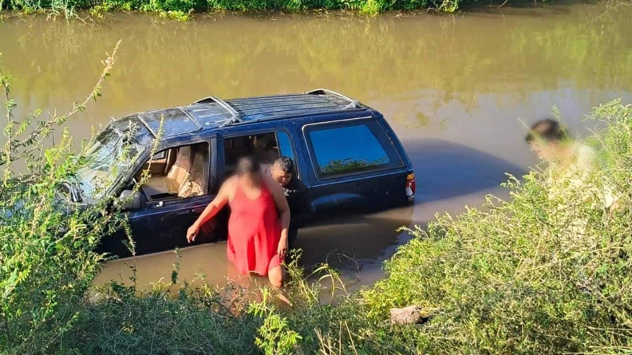 La vagoneta cayó al canal Sicae, en el ejido El Porvenir, pero gracias a la rápida intervención de elementos de la Policía todos resultaron ilesos
