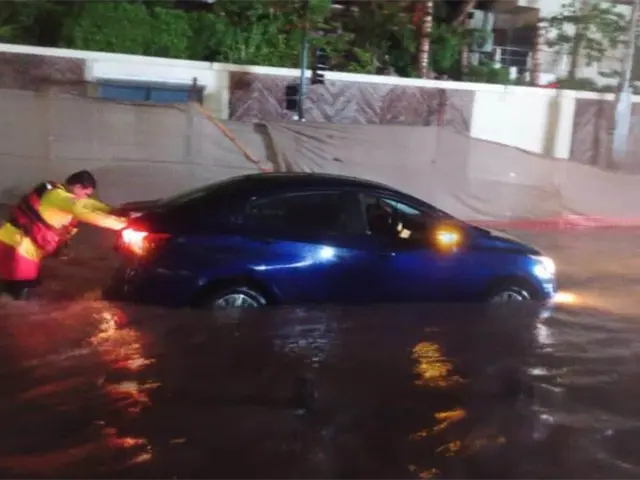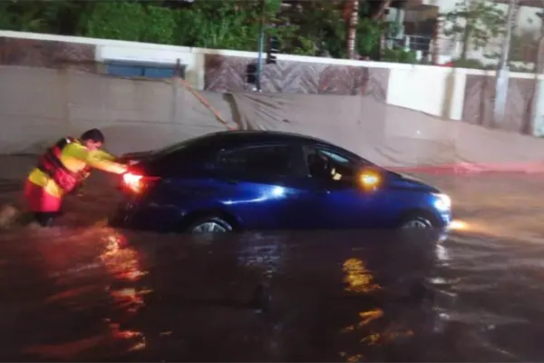 Lluvias nocturnas provocan encharcamientos en Mazatlán; familias y vehículos quedaron varados