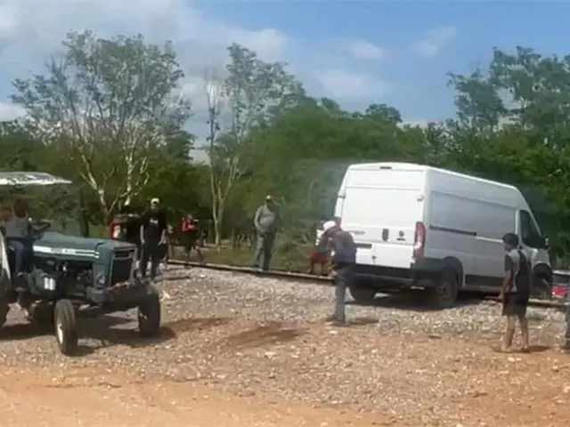 Poco después, otro poblador trajo un tractor agrícola de su casa y comenzaron a jalarlo, mientras varios pobladores empujaban y jalaban la camioneta embancada, y después de más de una hora de maniobras, entre tirones del tractor y el esfuerzo conjunto de varias personas, finalmente lograron liberar la Sprinter de las vías del ferrocarril.