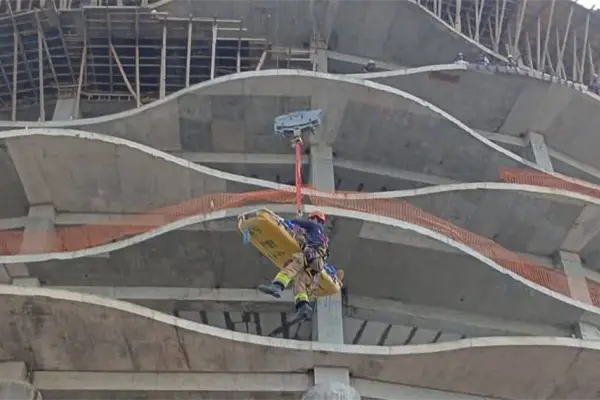 Ante esta situación, se activó el equipo de rescate técnico de Bomberos Mazatlán, que ejecutó las maniobras necesarias utilizando la grúa de la misma construcción para asegurar y trasladar al paciente de forma segura hacia el nivel donde pudiera ser atendido y posteriormente trasladado a un hospital.