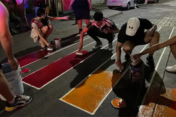 Colectivos LGBTIQ+ pintaron el cruce de las calles Ignacio Zaragoza y Álvaro Obregón como símbolo de su lucha por el respeto a la diversidad sexual.