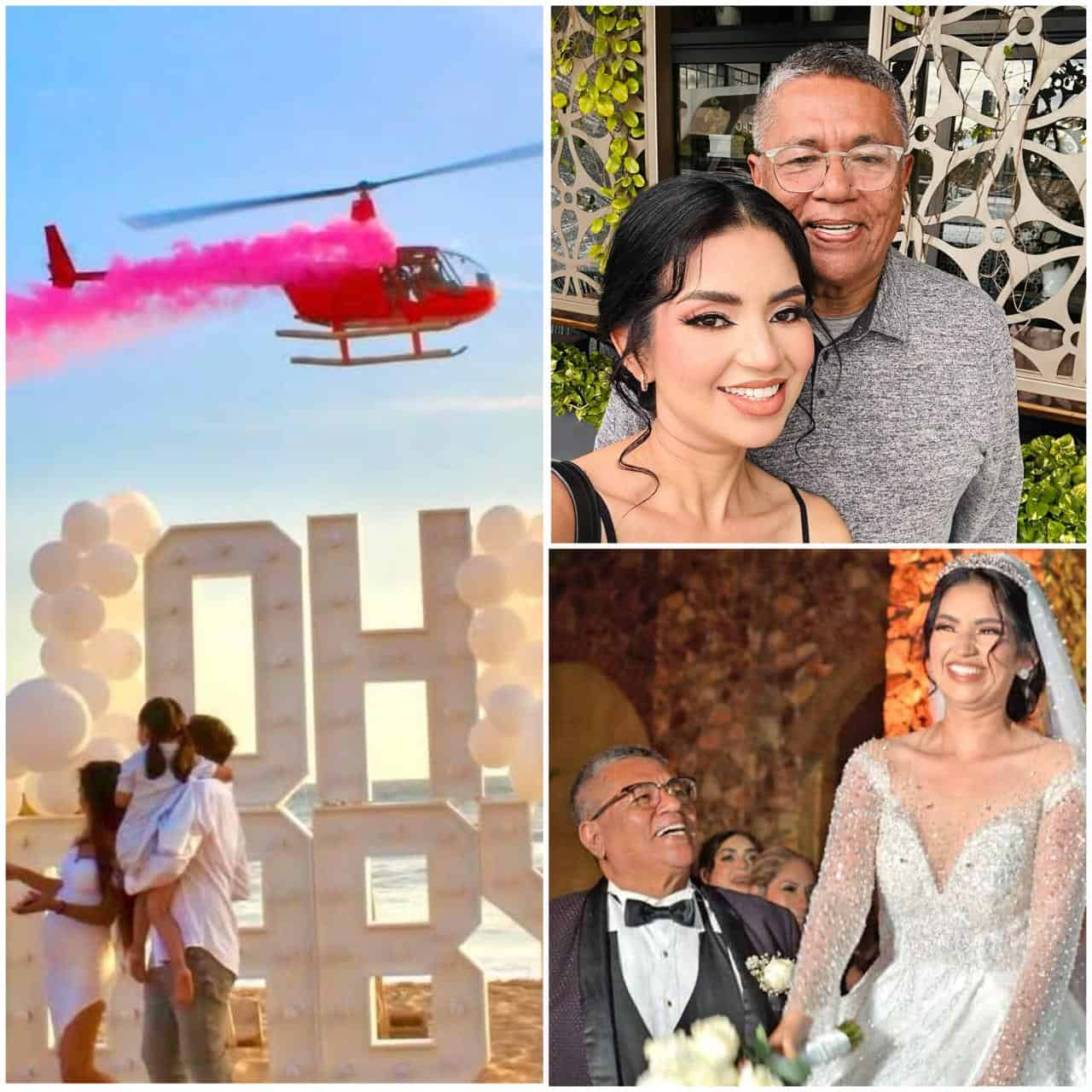 La noticia fue acompañada por una fotografía capturada en el malecón de Mazatlán, donde se observa a una pareja vestida de blanco y el hombre cargando a una niña en brazos; la revelación fue organizada por una empresa local especializada en experiencias aéreas y anuncios espectaculares con helicópteros, que ha ganado popularidad por realizar este tipo de eventos únicos frente al mar.
