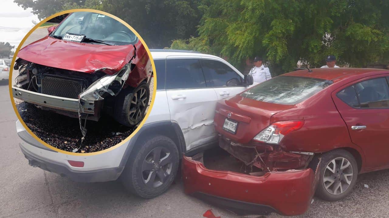 En el aparatoso choque participaron una vagoneta de la marca Jeep, línea Cherokee, de color blanco, modelo 2013, y un vehículo de la marca Nissan, línea Sentra de color tinto modelo 2017, ambos con placas de Sinaloa.