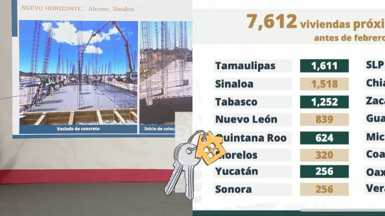 “Vamos a entregar antes de febrero del 2026… queremos que sean más viviendas, pero por lo pronto 7,612 viviendas, de las cuales 1,600 en Tamaulipas, 1,500 en Sinaloa, 1,200 en Tabasco, y así sucesivamente”, explicó Romero Oropeza.