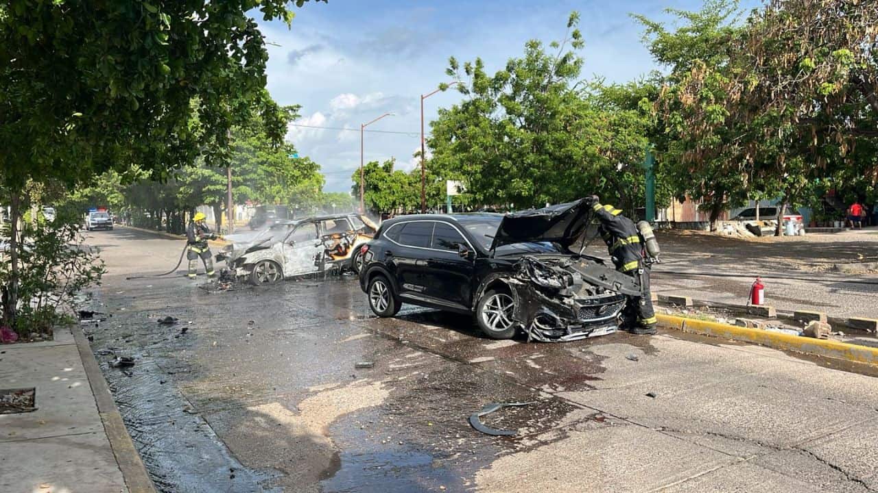 Una camioneta terminó en llamas después de participar en un accidente tipo choque en la Colonia Aurora en Culiacán.