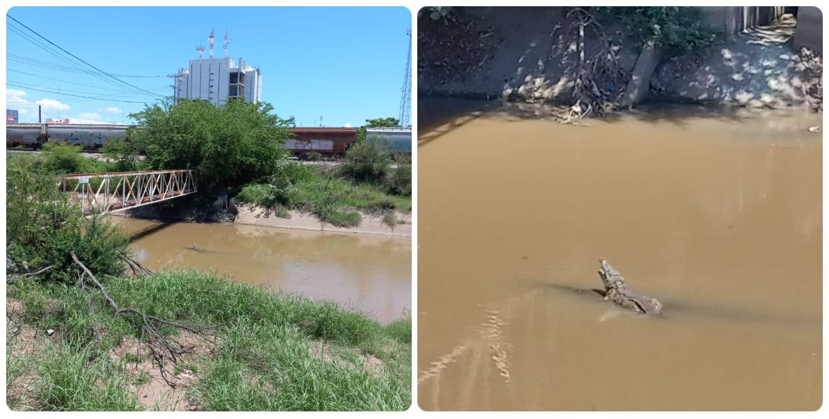 Un cocodrilo fue captado nadando en las aguas del canal Recursos Hidráulicos de Culiacán, sobre la avenida Eje Federalismo esta tarde de jueves 17 de julio.