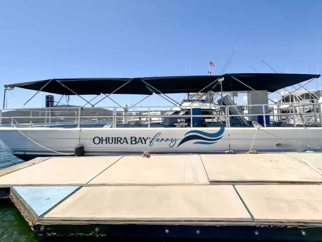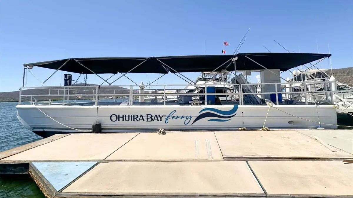 El Ohuira Bay Ferry cuenta con todos los servicios para garantizar una experiencia cómoda y divertida: música, bocinas bluetooth, mesas, sillas, sala con sombra, baño y chalecos salvavidas.