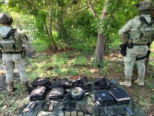 Durante un recorrido de vigilancia terrestre, elementos del Ejército Mexicano, en conjunto con la Guardia Nacional, la Secretaría de Marina, la Policía Estatal Preventiva, así como personal de la Secretaría de Seguridad y Protección Ciudadana, la Fiscalía General del Estado y la Fiscalía General de la República, localizaron material bélico y enervantes con posible vínculo a actividades delictivas.