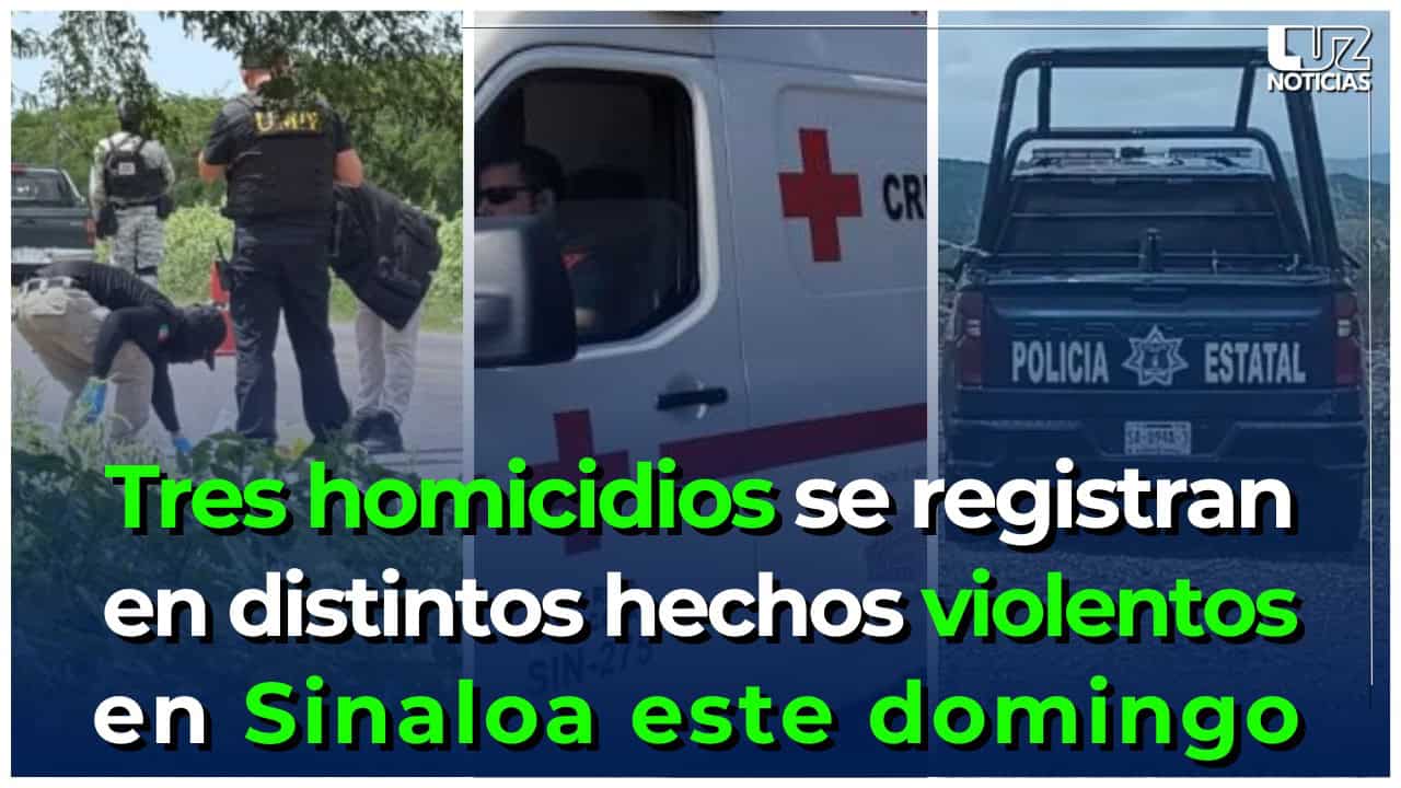 3 homicidios se registran en distintos hechos violentos en Sinaloa este domingo