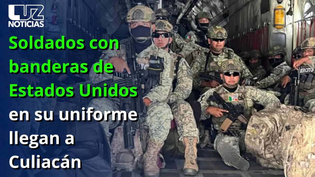 Soldados con banderas de Estados Unidos en su uniforme llegan a Culiacán