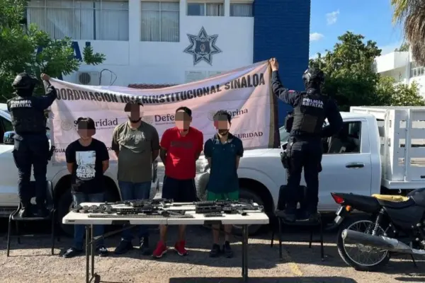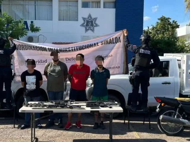 Detienen a cuatro civiles, les aseguran armas y municiones en Bellavista, Culiacán