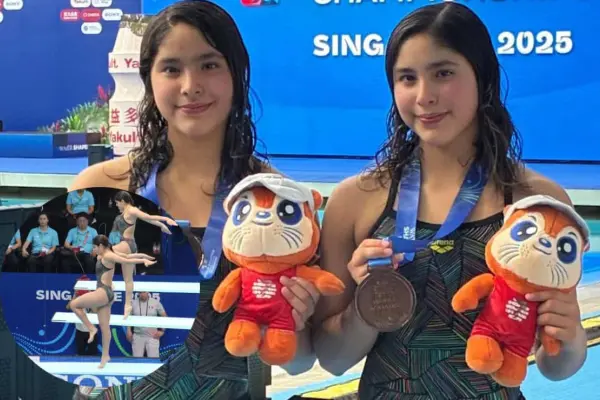 Lía y Mía, gemelas clavadistas hacen historia al ganar medalla en Mundial de Singapur 2025
